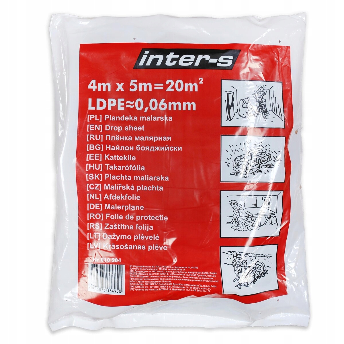 Folia malarska INTER-S-Folia malarska wykonana z LDPE -Służy do ochrony przed kurzem, brudem, farbami i wilgocią. Niezastąpiona przy wykonywaniu prac malarskich, remontowych i wykończeniowych. -Znakomicie zdaje egzamin również w zakładach lakierniczych. -Regranulat -Zdatna do recyklingu -Grubość folii: 60 µm -Rozmiar: 4 x 5 m |