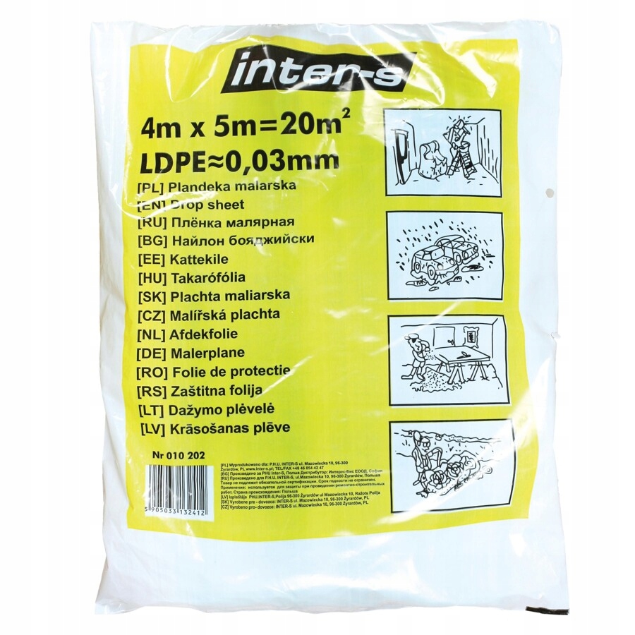 Folia malarska INTER-S-Folia malarska wykonana z LDPE -Służy do ochrony przed kurzem, brudem, farbami i wilgocią. Niezastąpiona przy wykonywaniu prac malarskich, remontowych i wykończeniowych. -Znakomicie zdaje egzamin również w zakładach lakierniczych. -Regranulat -Zdatna do recyklingu -Grubość folii: 30 µm -Rozmiar: 4 x 5 m |