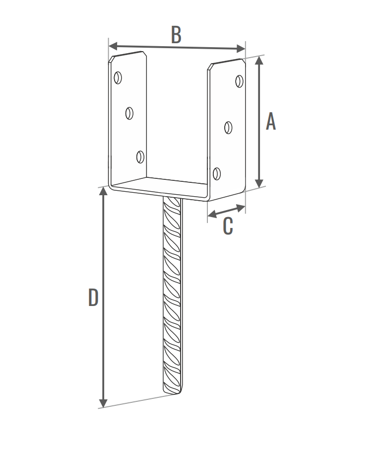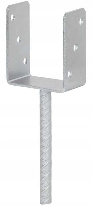 Zastosowanie: -Podstawa słupa z metalowym prętem żebrowym do zatapiania w betonie. -Posiada stosunkowo szerszą podstawę umożliwiającą przenoszenie większych obciążeń. -Produkt zwiększa jakość wykonania konstrukcji montażowych oraz skraca czas ich przygotowania. -Podstawa słupa wykorzystywana jest do solidnego kotwienia drewnianych słupów przy pomocy wkrętów oraz gwoździ anchor. -Kotwa posiada powłokę elektrolityczną, która chroni ją przed korozją. Charakterystyka: