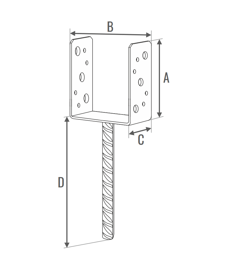 Podstawa słupa lekka typ U z prętem- różne rozmiary