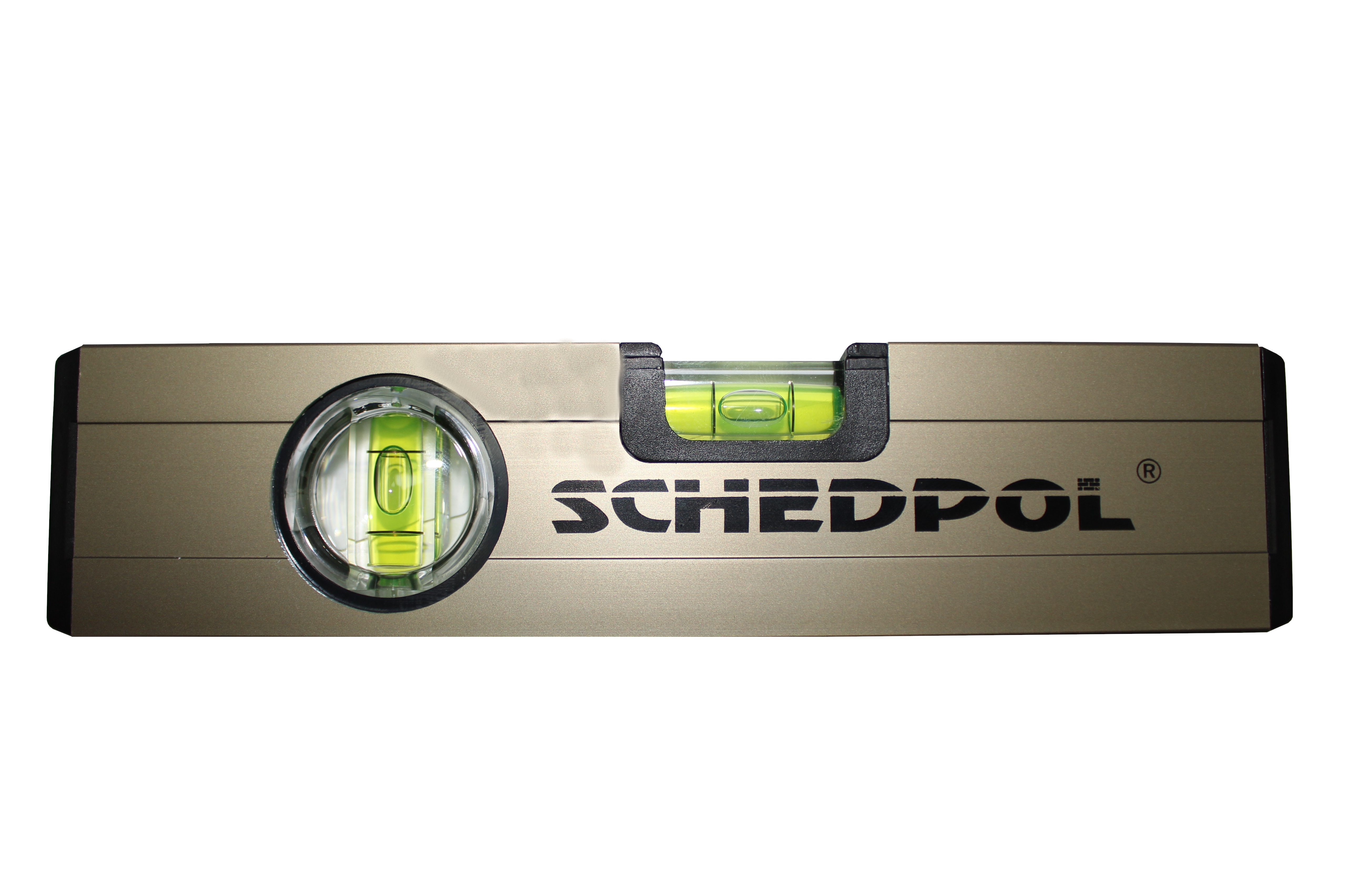 Poziomnice SCHEDPOL posiadają najdokładniejsze, wstrząsoodporne libelle o precyzji wskazań 0,024°=0,4 mm/m.,gdzie standardowa dokładność poziomnic niskiej jakości występujących na rynku wynosi 1 mm/m. Płyn stosowany w libelli nie ulega odbarwieniom, odporny jest na działanie temperatur -20 o C do +50 o C i promieniowania UV. Zastosowane libelle umożliwiające wyznaczenie pionu i poziomu niezależnie od sposobu trzymania wykonane z wysokiej jakości tworzywa akrylowego. Oczko poziome - tzw. RYBIE OKO - bardziej dokładne, widoczne pod każdym kątem |