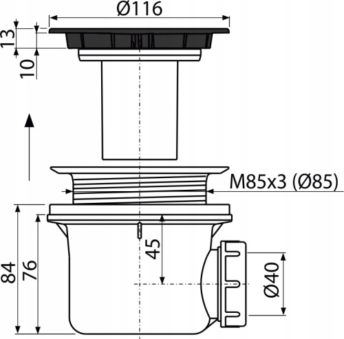 Syfon brodzikowy korek czarny-mat A49BLACK FI 90