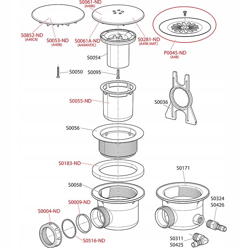 - Odpływ można podłączyć poprzez kolano A52