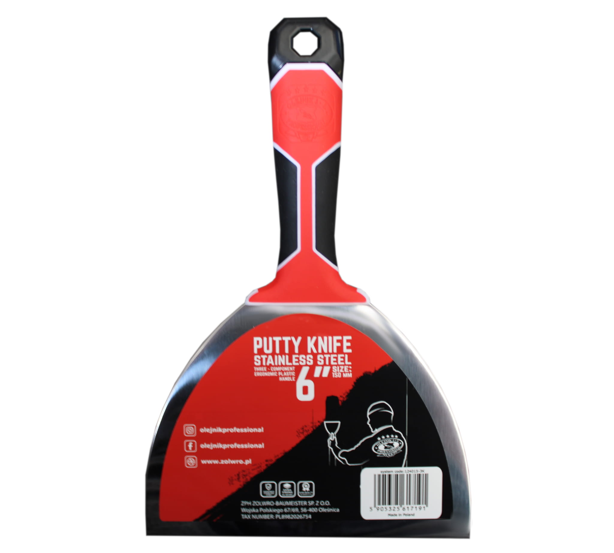 - Posiada metalowy hammer - jednocześnie do wbijania wystających wkrętów, wystających z płyt g-k oraz do wyważenia rękojeści. Ciężar hammera sprawia, że szpachelka sama "wpada" do ręki.
