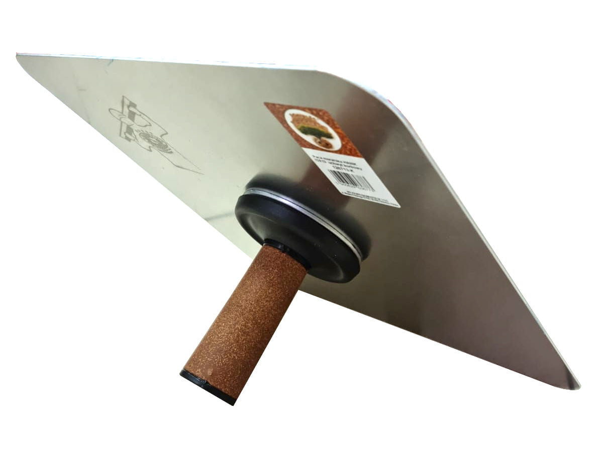 - Posiada mocny korkowy, demontowalny uchwyt, co w dużym stopniu ułatwia czyszczenie narzędzia oraz jego przechowywanie. Tworzywo korkowe sprawia, że tacę stabilnie trzyma się w dłoni.